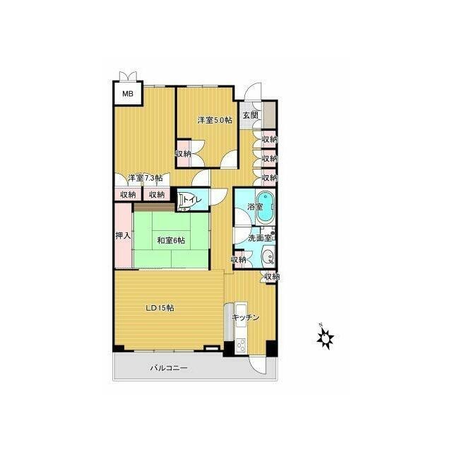 | 間取り(内訳) | 3LDK(LDK15、洋5、7.3、和6) | ||